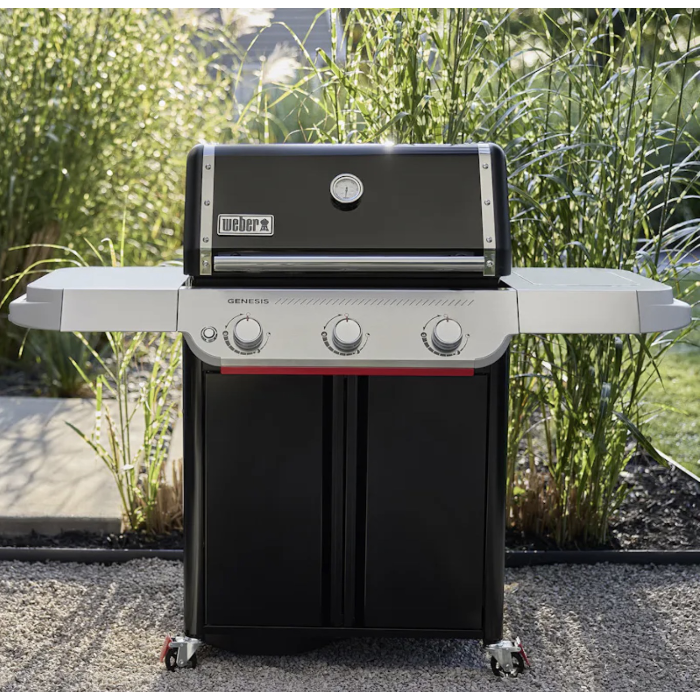 - Stylish black and stainless steel barbecue finish for a modern look and lasting durability