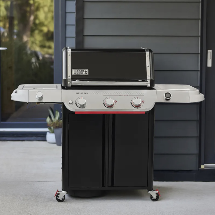 The Weber Genesis® E-335W Gas Barbecue is perfect for garden cooking and weekend get-togethers. Finished in black and stainless steel with a touch of red, this 3-burner barbecue delivers 17.88kW of grilling power, with two Boost Burners giving up to 35% extra heat in the Sear Zone for perfectly caramelised steaks, fish and vegetables.